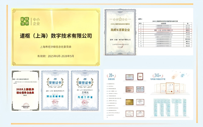 2025年,道枢屡获权威认可,不仅再度获上海市“专精特新”企业认定,更在“上海软件和信息技术服务业高成长百家企业”榜单中荣膺第三名,连续五年获评“上海市软件核心竞争力企业”,彰显其作为行业高质量发展中坚力量的强劲势头。此外,公司知识产权与资质体系不断夯实,拥有已授权及申请中的发明专利40余项、软件著作权200余件,先后通过ITSS3、CMMI5、CS3级权威认证,研发管理能力达到业界“量化级”顶尖水平。这一系列荣誉与成果,不仅印证了道枢的硬核实力,更见证了其从技术深耕到产业引领的坚实步伐。