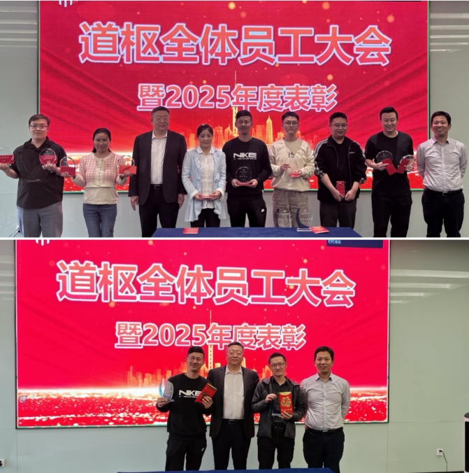 庆典伊始,现场对2025年度践行“以创值为中心,以结果为导向”表现突出的优秀员工与优秀项目组进行表彰,公司领导亲自为获奖者颁发奖杯与奖金,这既是对奋斗者辛勤付出的认可和激励,也藉此使“实干创值、奋进致远”的信念深植每一位道枢人心中。